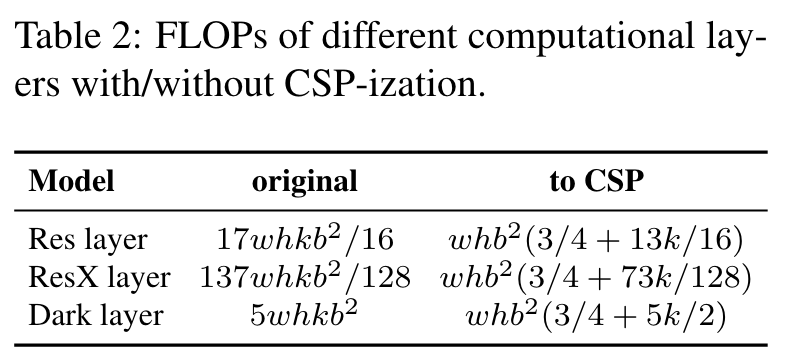 The CSPNet [37] proposed by Wang et al. can be applied to various CNN architectures, while reducing the amount of parameters and computations. In addition, it also improves accuracy and reduces inference time. We apply it to ResNet, ResNeXt, and Darknet and observe the changes in the amount of computations, as shown in Table 2. (Go to Paper)