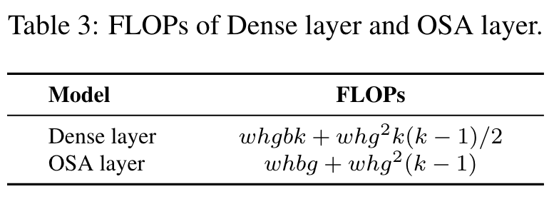 In Table 3, we analyze the network with efficient parameter utilization, such as the computation load of DenseNet and OSANet [15], where g means growth rate. (Go to Paper)