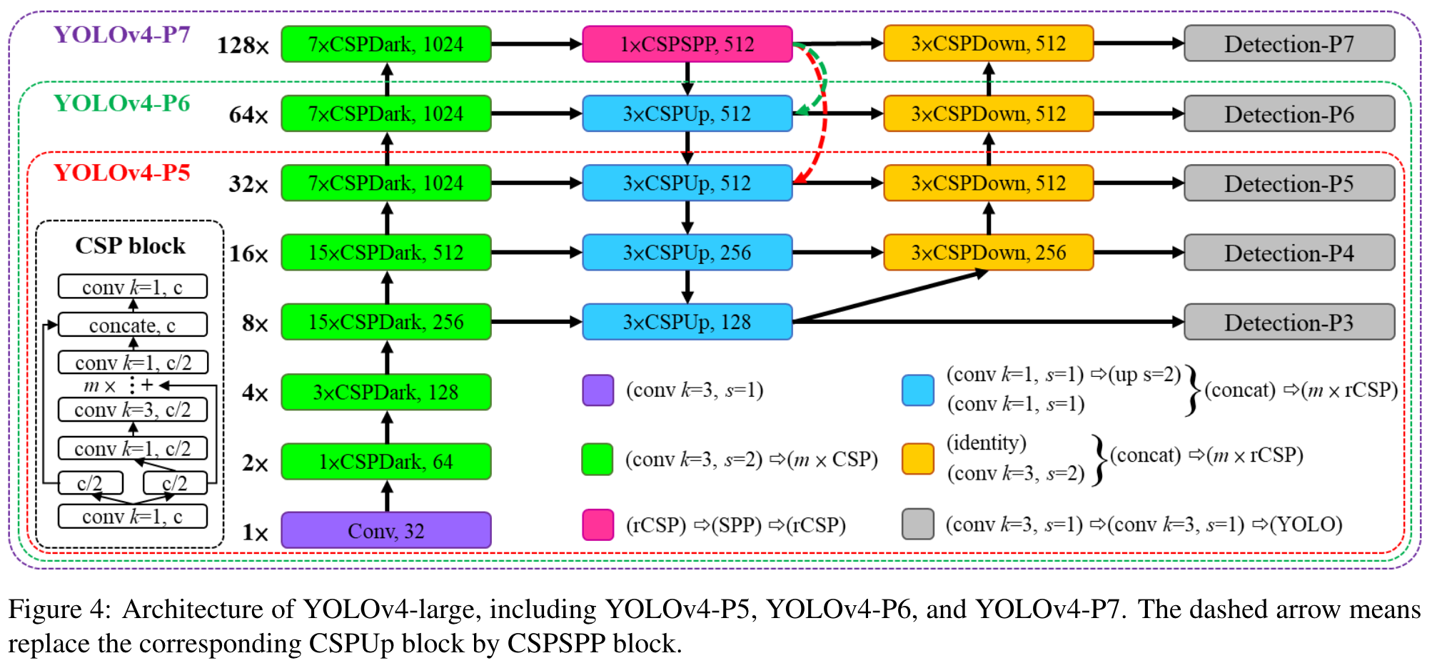 In this sub-section, we re-design YOLOv4 to YOLOv4-CSP to get the best speed/accuracy trade-off. (Go to Paper)