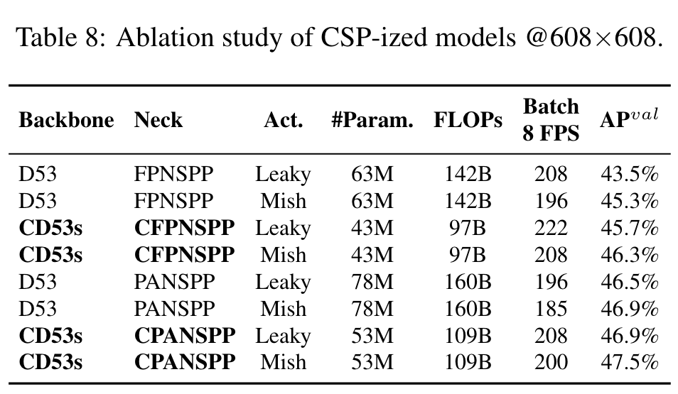 5.1. Ablation study on CSP-ized model