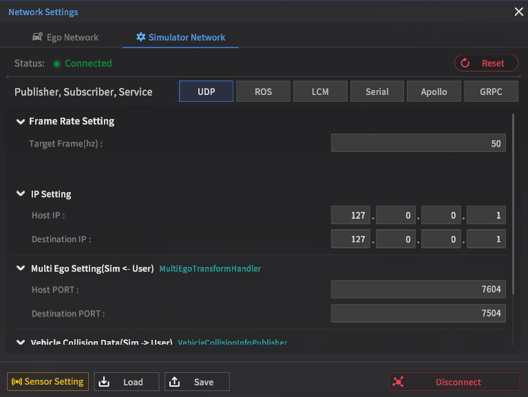 위 그림에서는 Morai 와 Sensor driver 가 동일한 컴퓨터에서 실행되기 때문에 동일한 IP 사